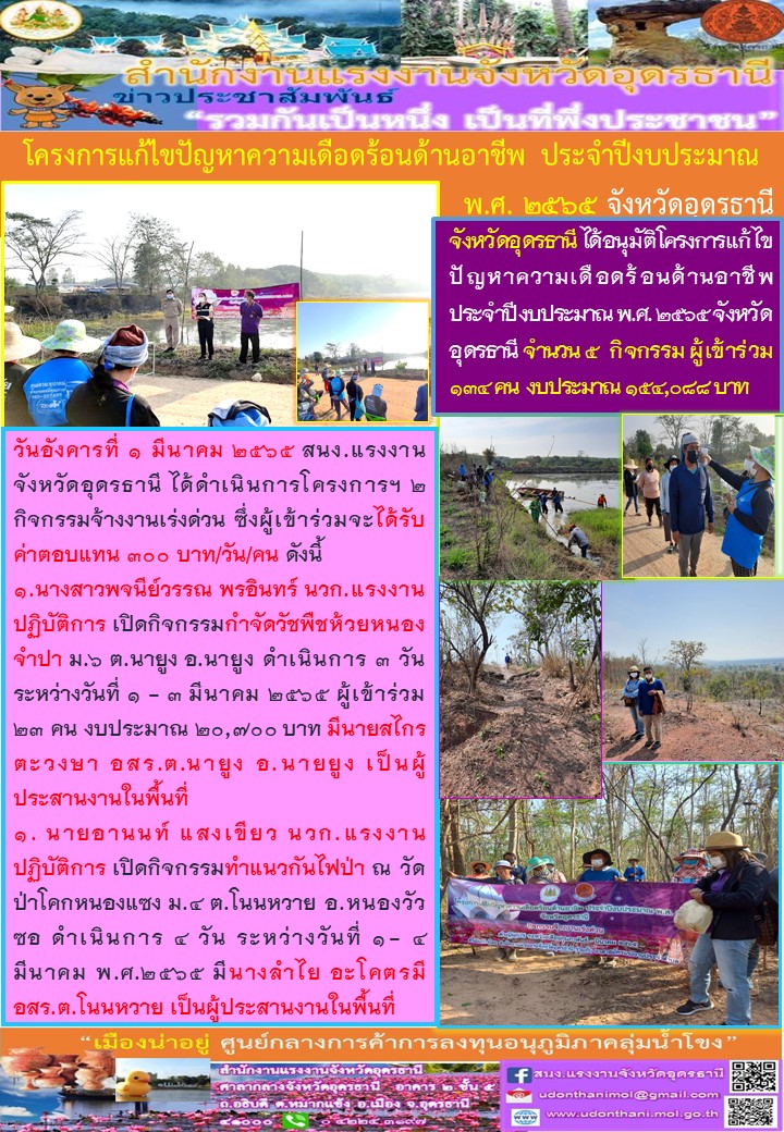 โครงการแก้ไขปัญหาความเดือดร้อนด้านอาชีพ ประจำปีงบประมาณ พ.ศ. 2565 จังหวัดอุดรธานี