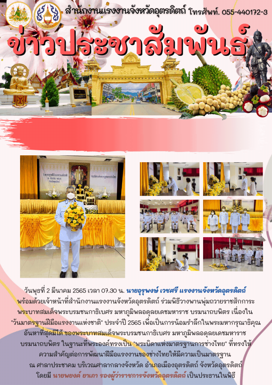 หัวหน้าส่วนราชการสังกัดกระทรวงแรงงานจังหวัดอ่างทองร่วมงาน “วันมาตรฐานฝีมือแรงงานแห่งชาติ ประจำปี 2565”
