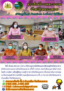 สำนักงานแรงงานจังหวัดหนองคาย จัดประชุมหัวหน้าส่วนราชการ สังกัดกระทรวงแรงงานจังหวัดหนองคาย ครั้งที่ 5/2565 ประจำเดือนกุมภาพันธ์ 2565