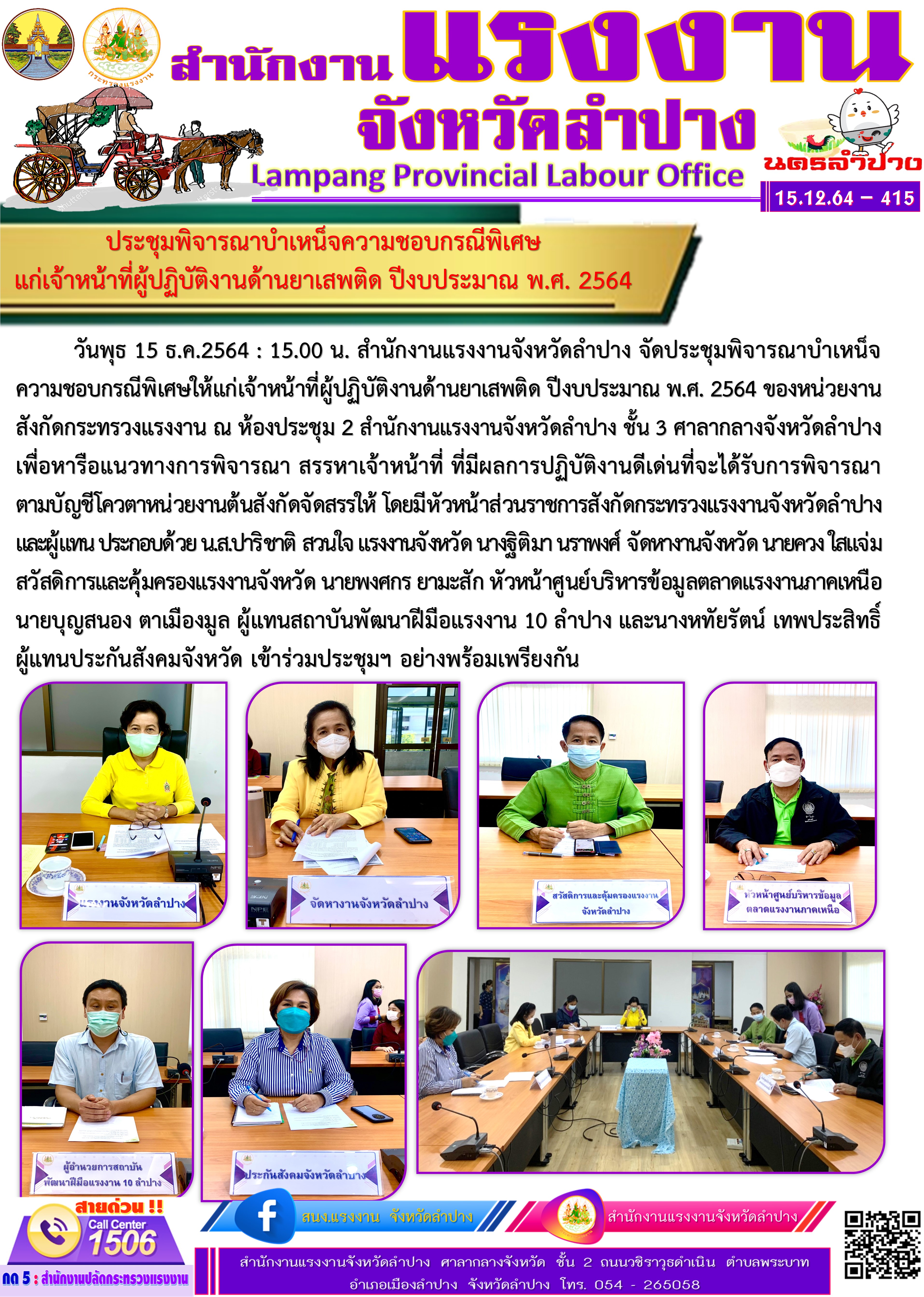 สรจ.ลำปาง ร่วมประชุมพิจารณาบำเหน็จความชอบกรณีพิเศษให้แก่เจ้าหน้าที่ผู้ปฏิบัติงานด้านยาเสพติด ปีงบประมาณ พ.ศ. 2564