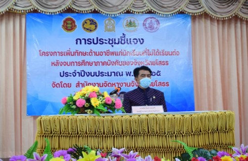 สรจ.ยโสธร ร่วมพิธีเปิดการประชุมชี้แจงโครงการเพิ่มทักษะด้านอาชีพแก่นักเรียนที่ไม่ได้เรียนต่อหลังจบการศึกษาภาคบังคับของจังหวัดยโสธร ประจำปีงบประมาณ พ.ศ. 2564