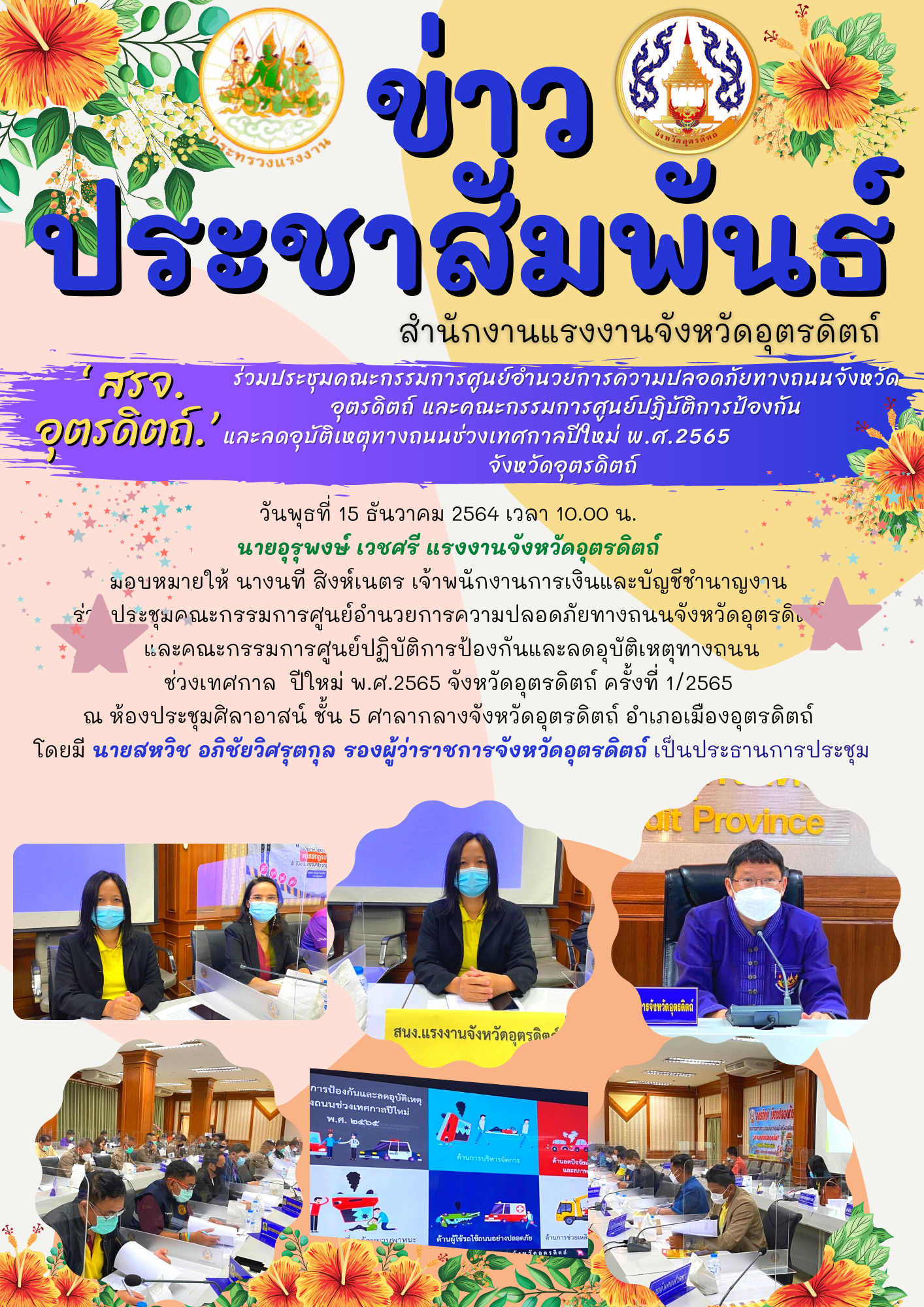 ‘สรจ.อุตรดิตถ์’ ร่วมประชุมคณะกรรมการศูนย์อำนวยการความปลอดภัยทางถนนจังหวัดอุตรดิตถ์ และคณะกรรมการศูนย์ปฏิบัติการป้องกัน และลดอุบัติเหตุทางถนนช่วงเทศกาลปีใหม่ พ.ศ.2565 จังหวัดอุตรดิตถ์