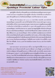 ศูนย์ปฏิบัติการป้องกันการค้ามนุษย์ด้านแรงงานจังหวัดพระนครศรีอยุธยา ออกตรวจบูรณาการสถานประกอบการกลุ่มเสี่ยงตามแผนปฏิบัติการป้องกันการบังคับใช้แรงงานหรือบริการและการค้ามนุษย์ด้านแรงงาน
