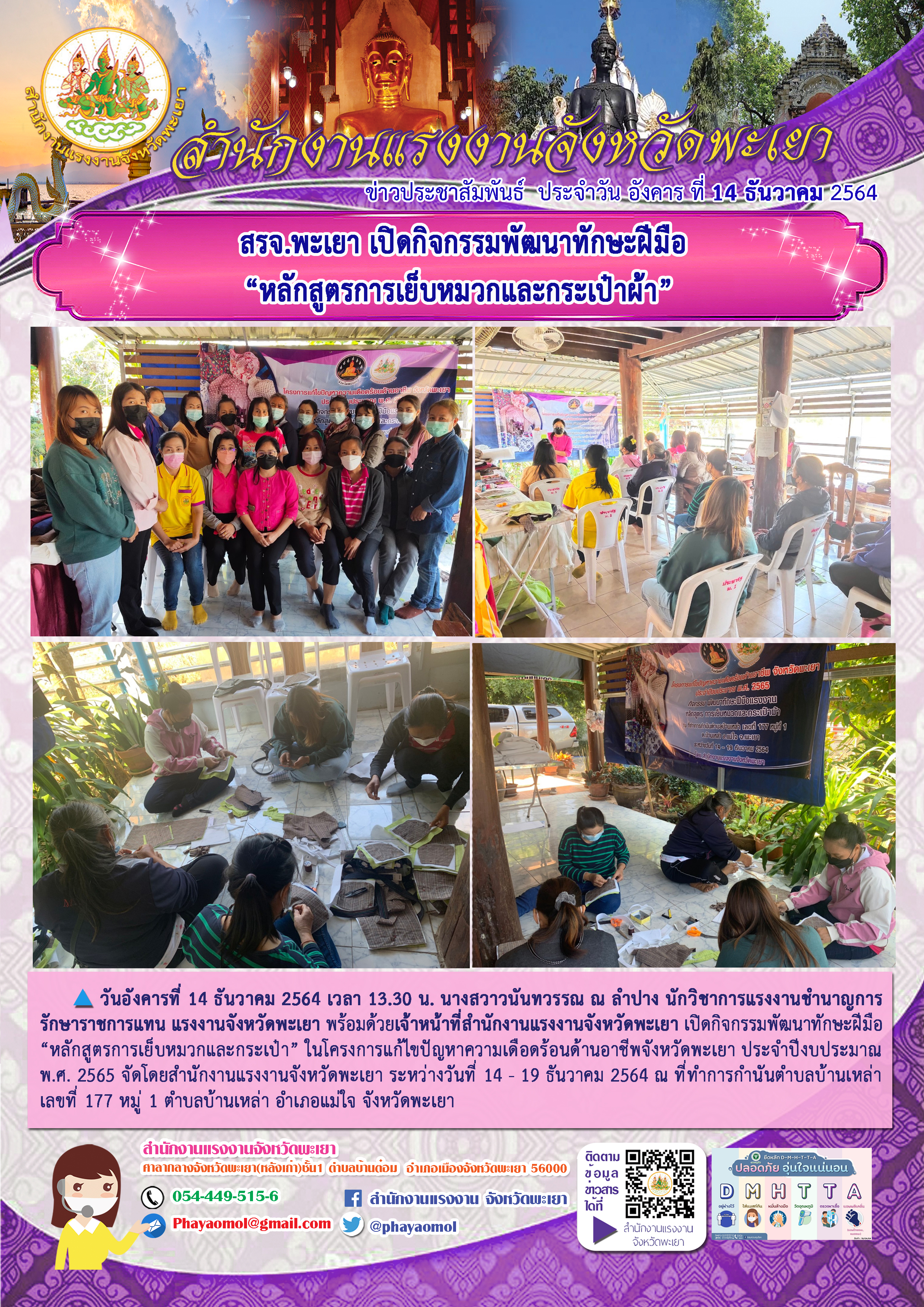สรจ.พะเยา เปิดกิจกรรมพัฒนาทักษะฝีมือ “หลักสูตรการเย็บหมวกและกระเป๋าผ้า”