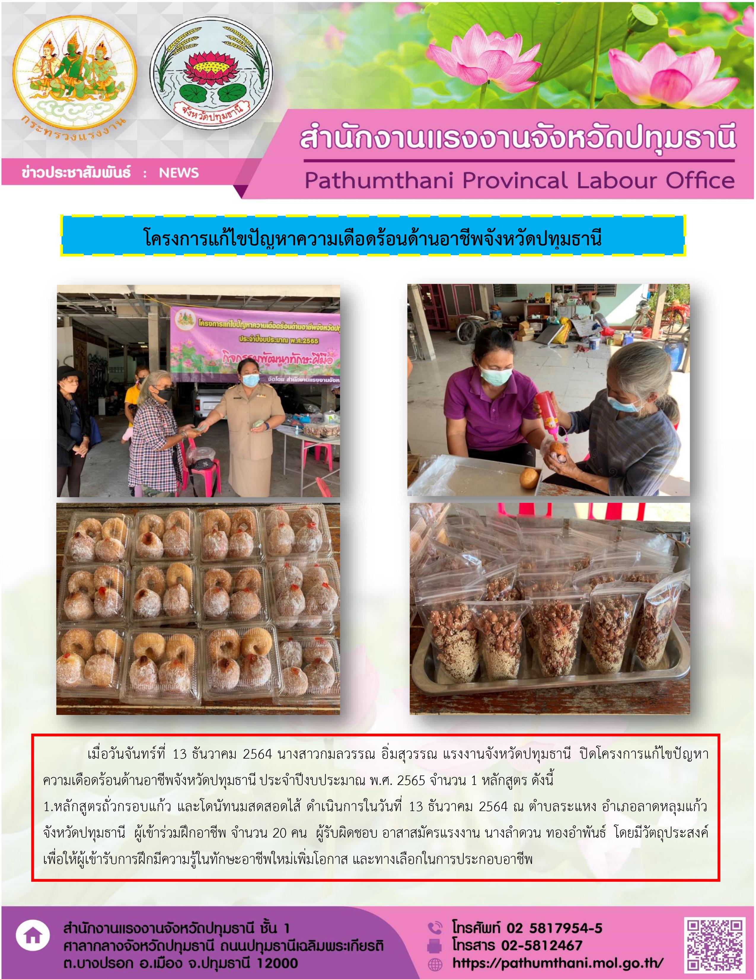 แรงงานจังหวัดปทุมธานี ร่วมงานโครงการแก้ไขปัญหาความเดือดร้อนด้านอาชีพ ตำบลระแหง อำเภอลาดหลุมแก้ว จังหวัดปทุมธานี