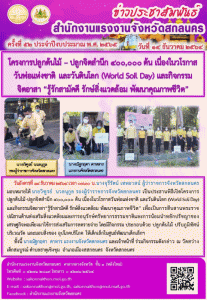 แรงงานจังหวัดสกลนคร ร่วมโครงการปลูกต้นไม้ – ปลูกจิตสำนึก 400,000 ต้น เนื่องในวโรกาส วันพ่อแห่งชาติ และวันดินโลก (World Soil Day) และกิจกรรม จิตอาสา “รู้รักสามัคคี รักษ์สิ่งแวดล้อม พัฒนาคุณภาพชีวิต”