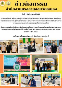 แรงงานจังหวัดระนอง ร่วมประชุมเชิงปฏิบัติการจัดทำแผนเตรียมความพร้อมรองรับการเปิดประเทศ และรองรับการระบาดโรคติดเชื้อไวรัสโคโรนา 2019 ประจำปีงบประมาณ พ.ศ.2565 ภาคใต้ 14 จังหวัด