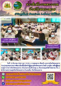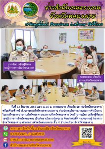 แรงงานจังหวัดหนองคาย พร้อมด้วยหัวหน้าส่วนราชการสังกัดกระทรวงแรงงาน ร่วมประชุมในการวางแผนการดำเนินงานในภารกิจของหน่วยงานสังกัดกระทรวงแรงงานจังหวัดหนองคาย