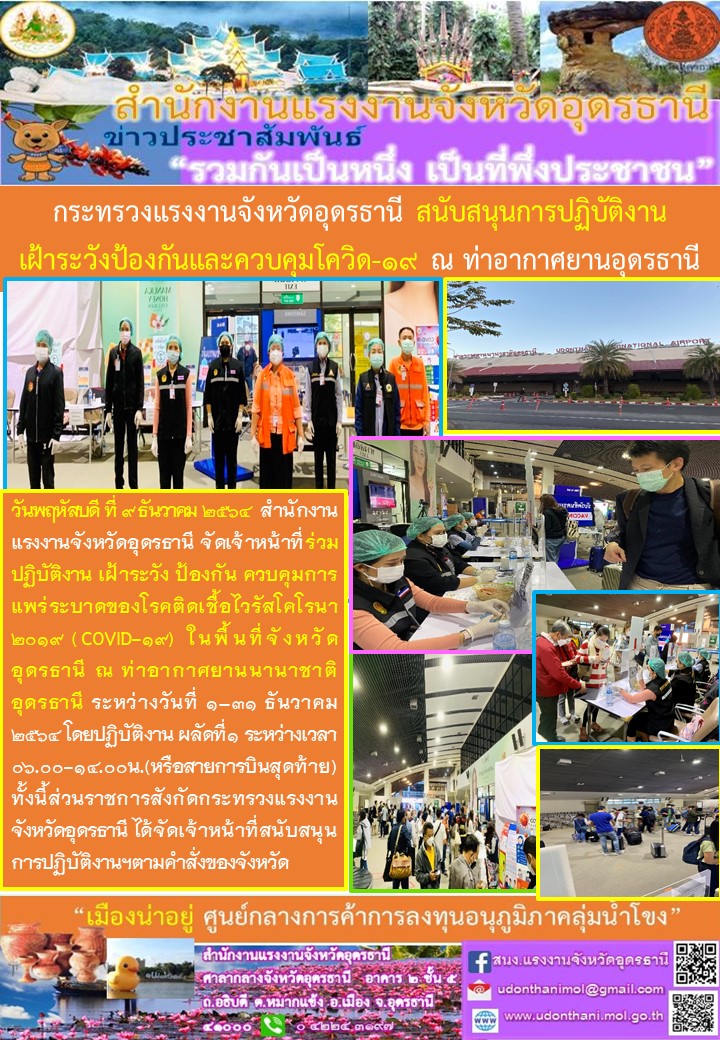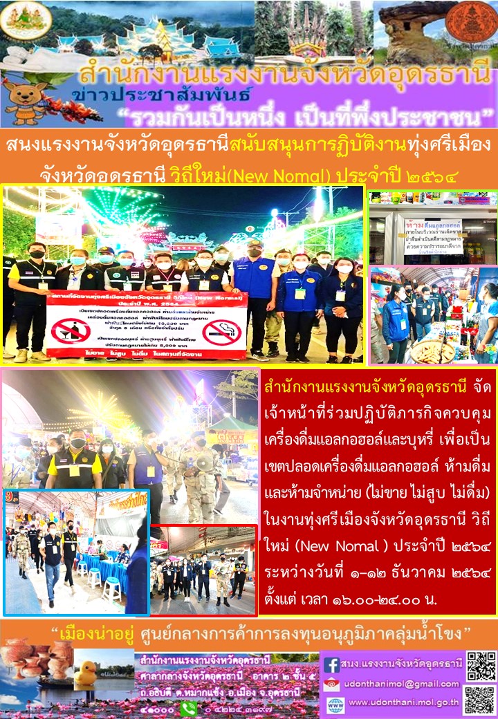 สำนักงานแรงงานจังหวัดอุดรธานี สนับสนุนการปฏิบัติงานทุ่งศรีเมืองจังหวัดอุดรธานี วิถีใหม่ (New Normal) ประจำปี 2564