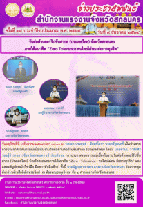 แรงงานจังหวัดสกลนคร ร่วมกิจกรรมวันต่อต้านคอร์รัปชันสากล (ประเทศไทย) จังหวัดสกลนคร ภายใต้แนวคิด “Zero Tolerance คนไทยไม่ทน ต่อการทุจริต”