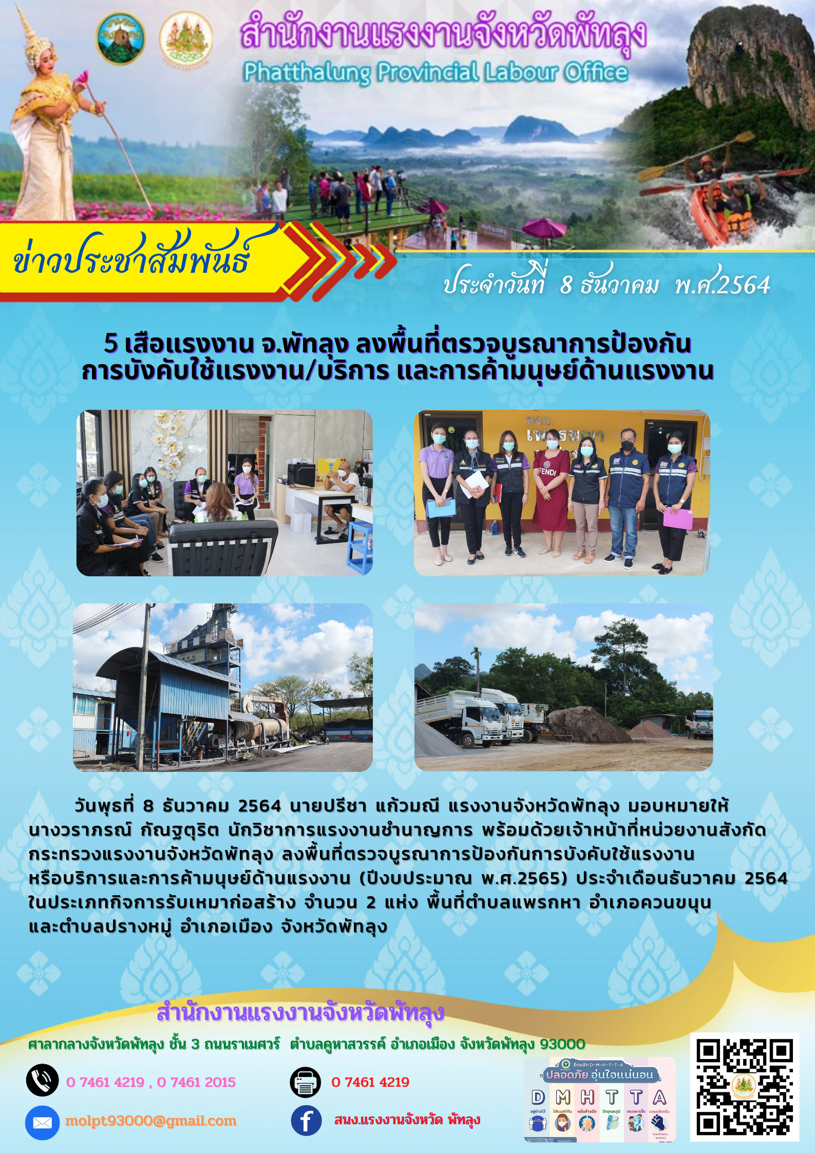 5 เสือแรงงาน จ.พัทลุง ลงพื้นที่ตรวจบูรณาการป้องกัน การบังคับใช้แรงงาน/บริการ และการค้ามนุษย์ด้านแรงงาน