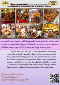 แรงงานจังหวัดพระนครศรีอยุธยา ร่วมพิธีเจริญพุทธมนต์สมโภชพระพุทธไตรรัตนายก (หลวงพ่อโต) ถวายเป็นพระราชกุศลสมเด็จพระเจ้าลูกเธอ เจ้าฟ้าพัชรกิติยาภา นเรนทราเทพยวดี กรมหลวงราชสาริณีสิริพัชร มหาวัชรราชธิดา เนื่องในโอกาสวันคล้ายวันประสูติ 7 ธันวาคม 2564