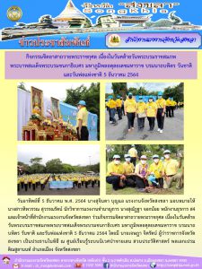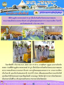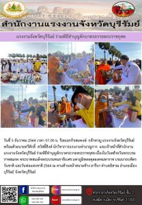 แรงงานจังหวัดสงขลา ร่วมพิธีทำบุญตักบาตรพระสงฆ์ 59 รูป เนื่องในวันคล้ายวันพระบรมราชสมภพ พระบาทสมเด็จพระบรมชนกาธิเบศร มหาภูมิพลอดุลยเดชมหาราช บรมนาถบพิตร วันชาติ และวันพ่อแห่งชาติ 5 ธันวาคม 2564