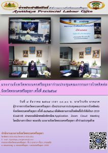 แรงงานจังหวัดพระนครศรีอยุธยา ร่วมประชุมคณะกรรมการโรคติดต่อ จังหวัดพระนครศรีอยุธยา ครั้งที่ 54/2564