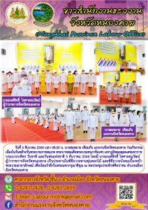 แรงงานจังหวัดหนองคาย ร่วมพิธีถวายพานพุ่มดอกไม้ และพิธีถวายบังคมเบื้องหน้าพระบรมฉายาลักษณ์เนื่องในวันคล้ายวันพระบรมราชสมภพ พระบาทสมเด็จพระบรมชนกาธิเบศร มหาภูมิพลอดุลยเดชมหาราช บรมนาถบพิตร วันชาติ และวันพ่อแห่งชาติ 5 ธันวาคม 2564