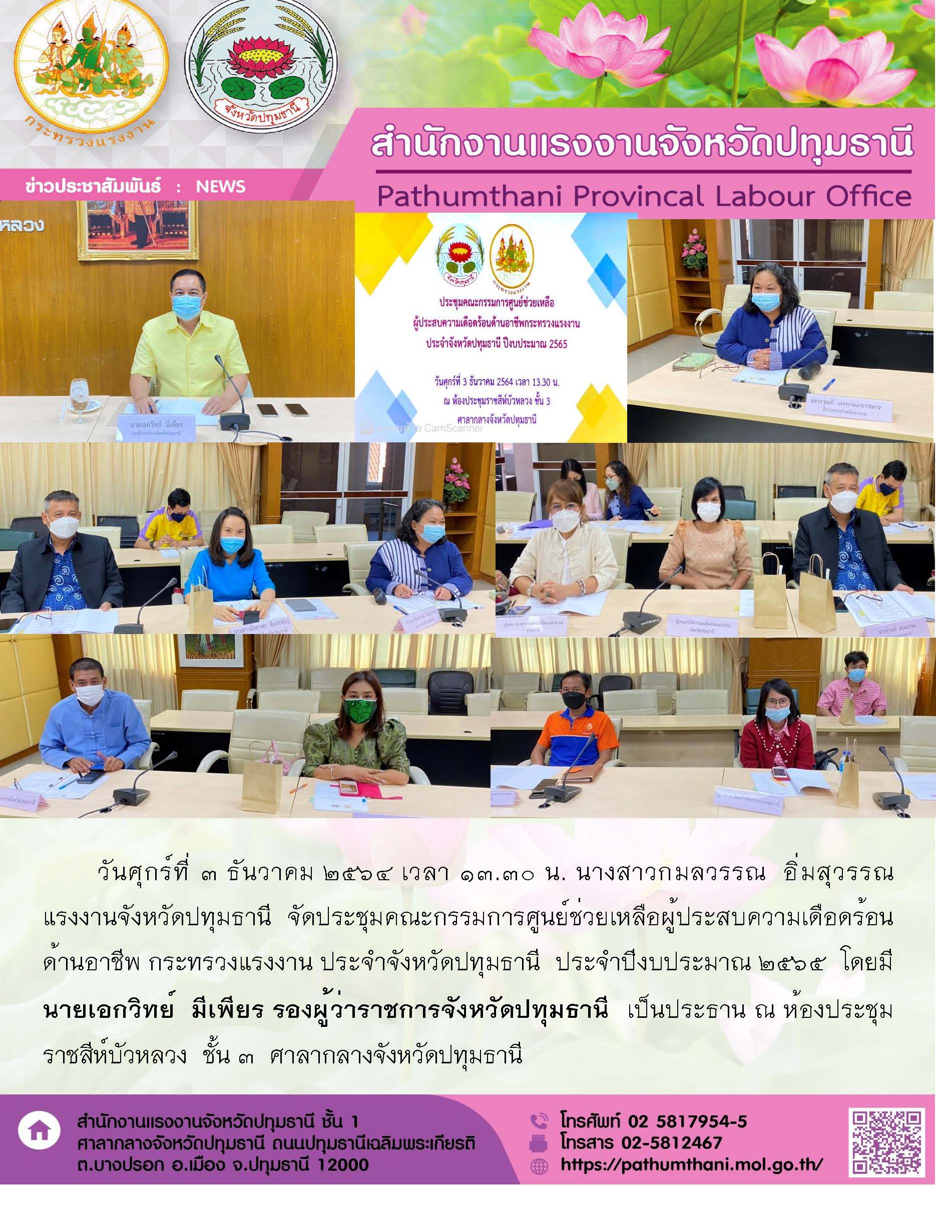 แรงงานจังหวัดปทุมธานี ประชุมคณะกรรมการศูนย์ช่วยเหลือผู้ประสบความเดือดร้อนด้านอาชีพ กระทรวงแรงงาน ประจำจังหวัดปทุมธานี ประจำปีงบประมาณ 2565