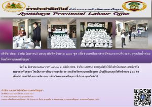 บริษัท ปตท. จำกัด (มหาชน) มอบถุงยังชีพจำนวน 100 ชุด เพื่อช่วยเหลืออาสาสมัครแรงงานที่ประสบอุทุกภัยน้ำท่วม จังหวัดพระนครศรีอยุธยา