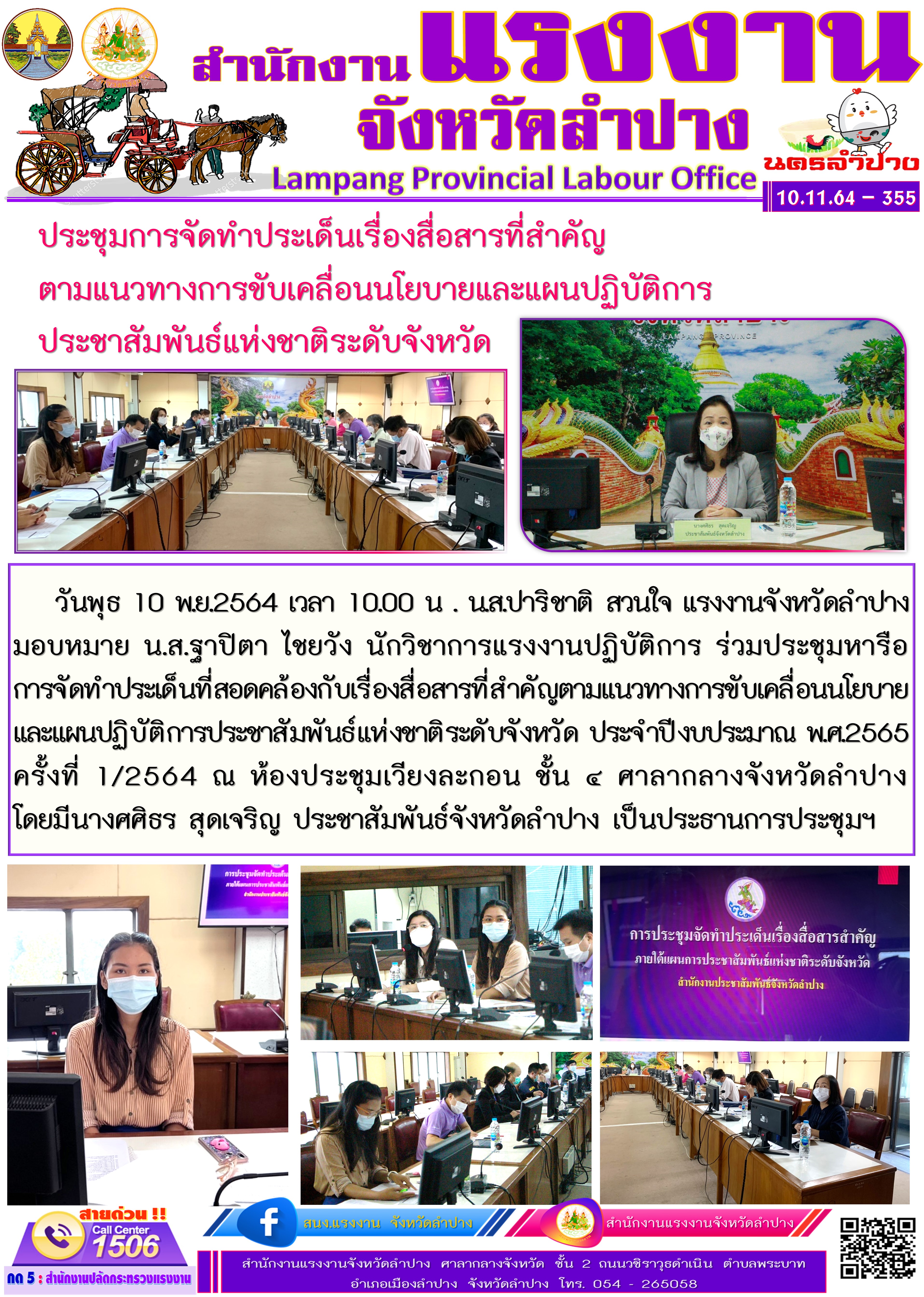 สรจ.ลำปาง ร่วมประชุมการจัดทำประเด็นเรื่องสื่อสารที่สำคัญ ตามแนวทางการขับเคลื่อนนโยบายและแผนปฏิบัติการประชาสัมพันธ์แห่งชาติระดับจังหวัด
