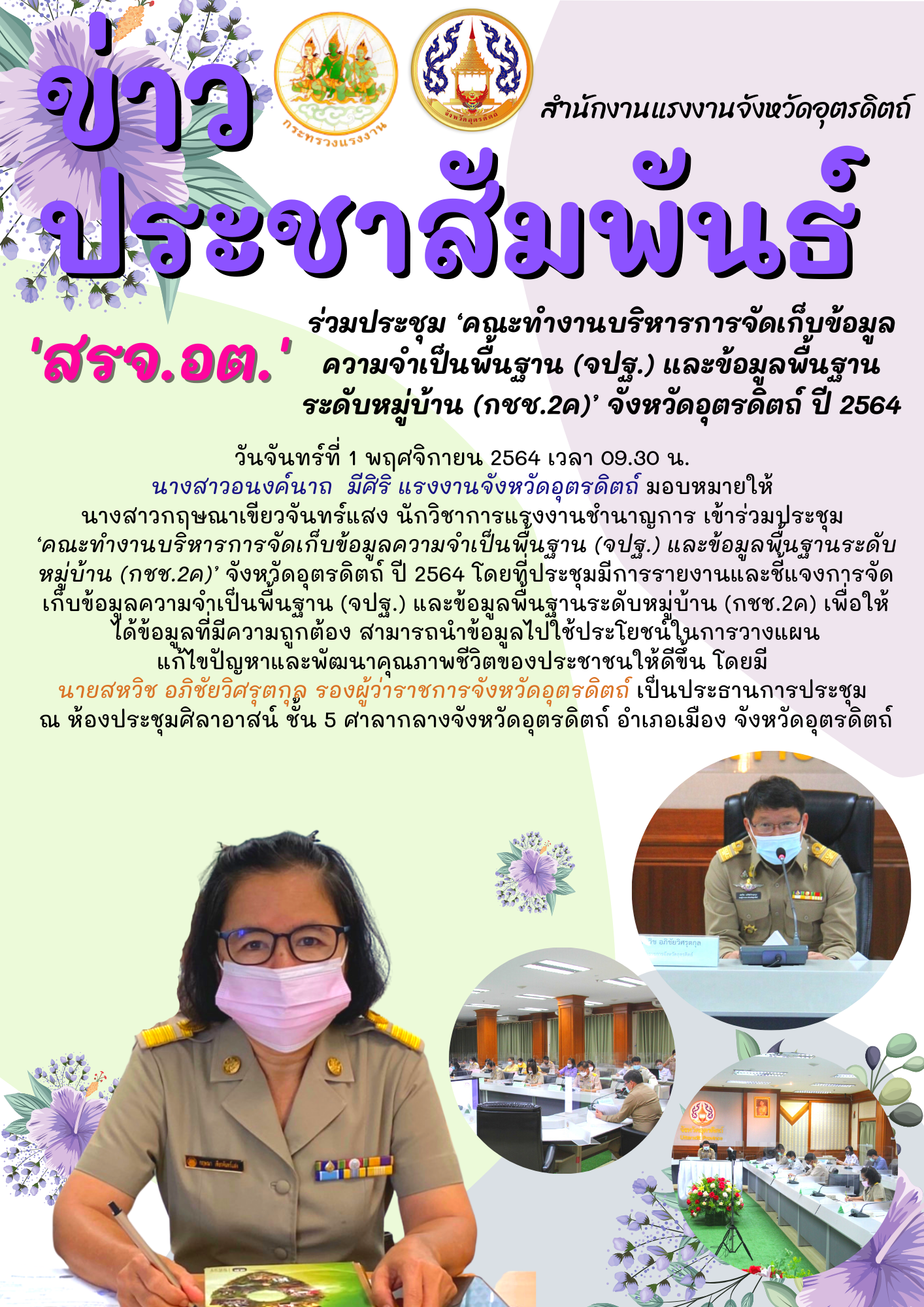 ‘สรจ.อต.’ ร่วมประชุม ‘คณะทำงานบริหารการจัดเก็บข้อมูลความจำเป็นพื้นฐาน (จปฐ.) และข้อมูลพื้นฐานระดับหมู่บ้าน (กชช.2ค)’ จังหวัดอุตรดิตถ์ ปี 2564
