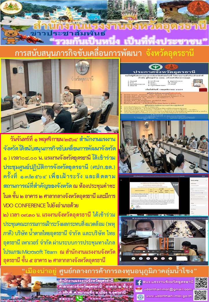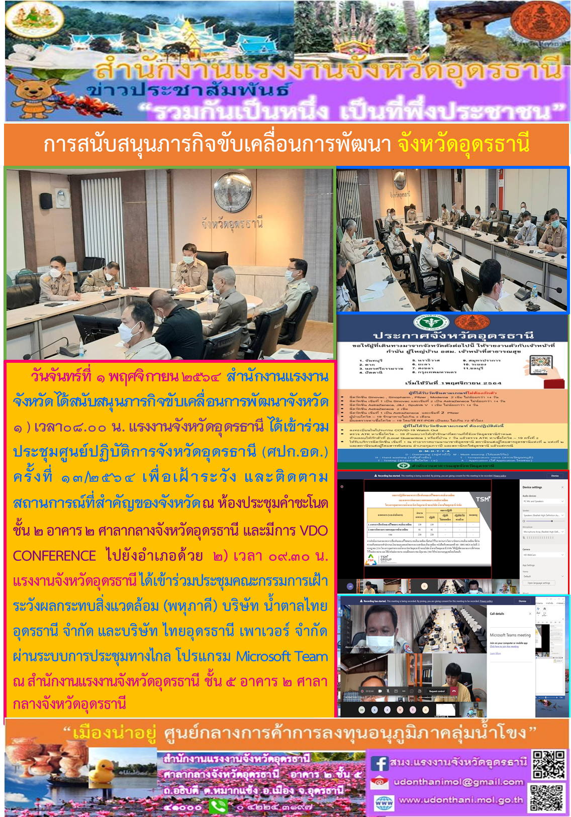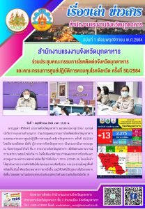 สำนักงานแรงงานจังหวัดมุกดาหาร ร่วมประชุมคณะกรรมการโรคติดต่อจังหวัดมุกดาหารและคณะกรรมการศูนย์ปฏิบัติการควบคุมโรคจังหวัด ครั้งที่ 50/2564