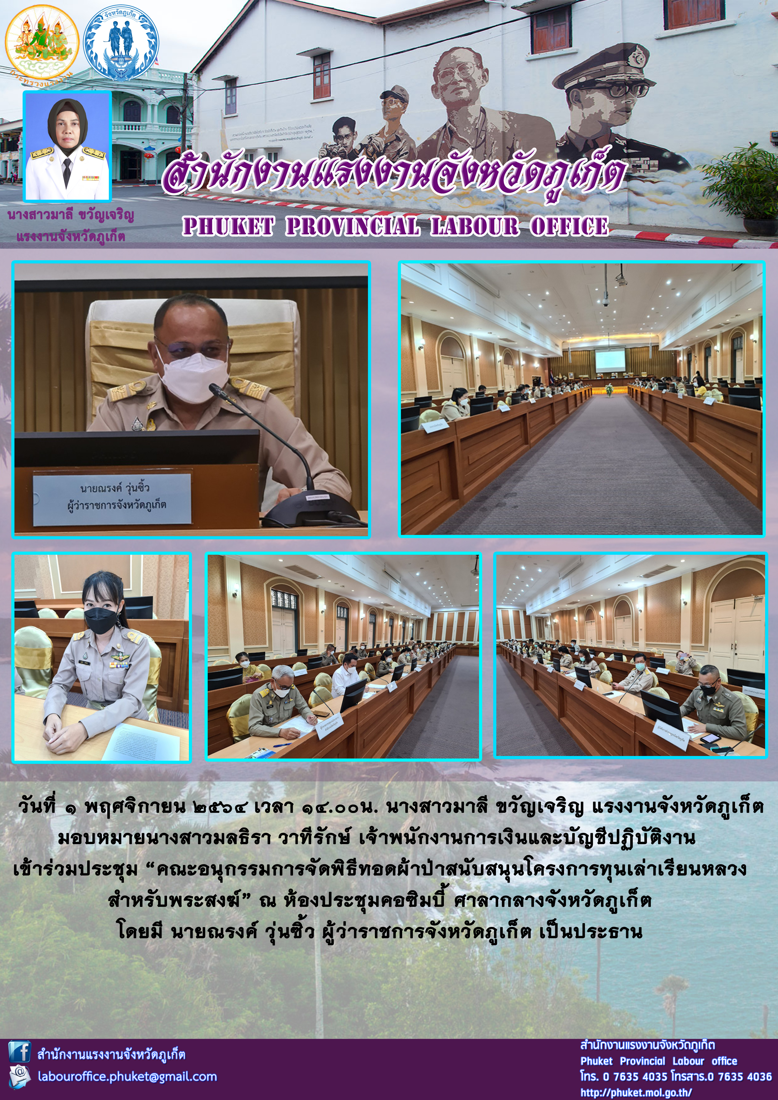 สำนักงานแรงงานจังหวัดภูเก็ต เข้าร่วมประชุม “คณะอนุกรรมการจัดพิธีทอดผ้าป่าสนับสนุนโครงการทุนเล่าเรียนหลวง สำหรับพระสงฆ์”
