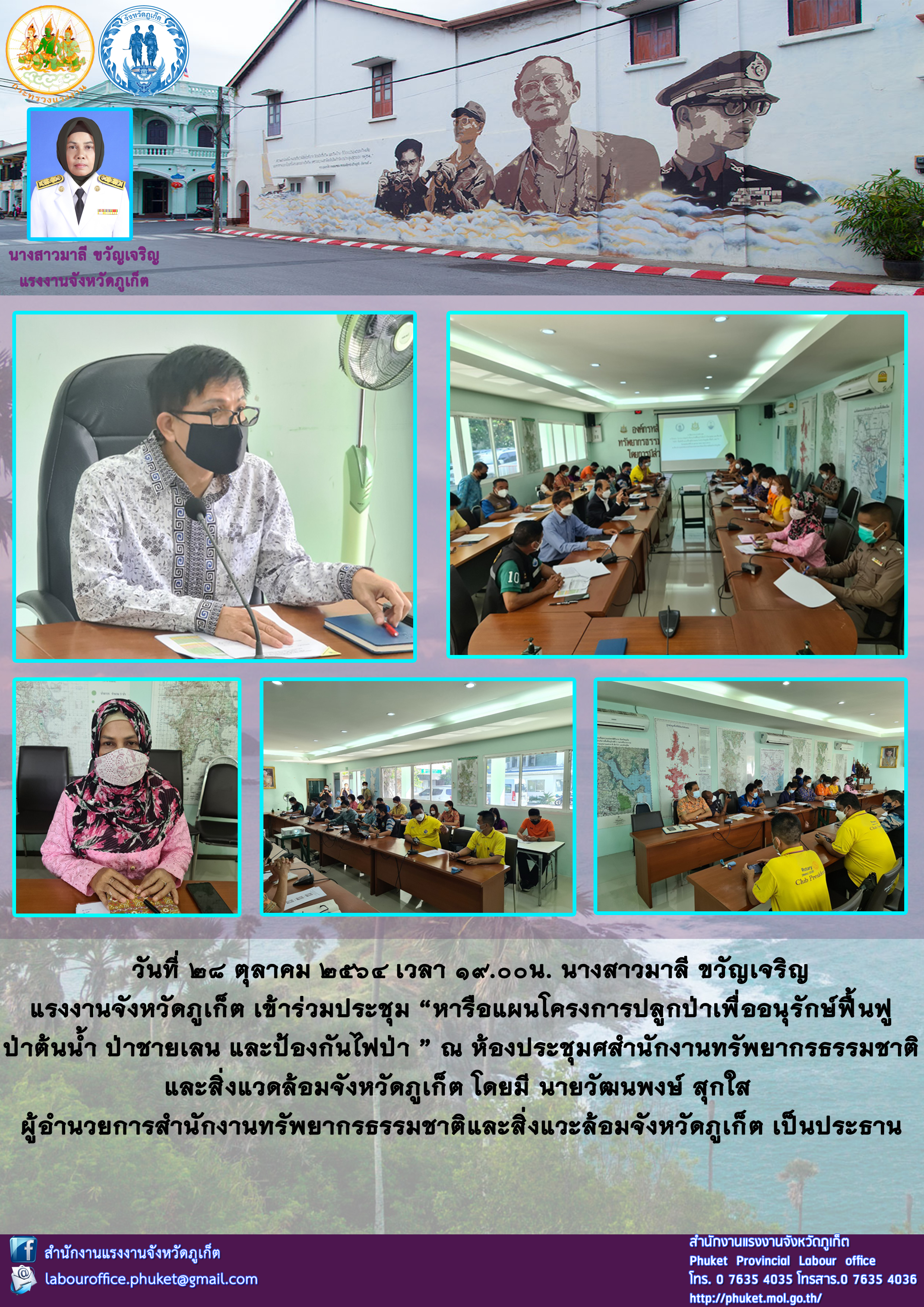 สำนักงานแรงงานจังหวัดภูเก็ต เข้าร่วมประชุม “หารือแผนโครงการปลูกป่าเพื่ออนุรักษ์ฟื้นฟู ป่าต้นน้ำ ป่าชายเลน และป้องกันไฟป่า ”