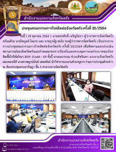 แรงงานจังหวัดตรัง ร่วมการประชุมคณะกรรมการโรคติดต่อจังหวัดตรัง ครั้งที่ 35/2564 เพื่อติดตามและประเมินสถานการณ์ของจังหวัดตรังและกำหนดมาตรการป้องกันและควบคุมการแพร่ระบาดของโรคติดเชื้อไวรัสโคโรนา 2019 (Covid – 19)