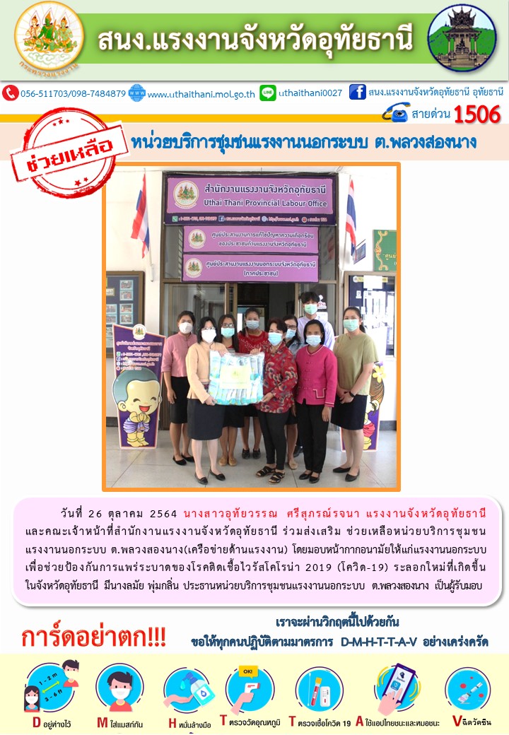 นางสาวอุทัยวรรณ ศรีสุภรณ์รจนา แรงงานจังหวัดอุทัยธานี ช่วยเหลือหน่วยบริการชุมชนแรงงานนอกระบบ