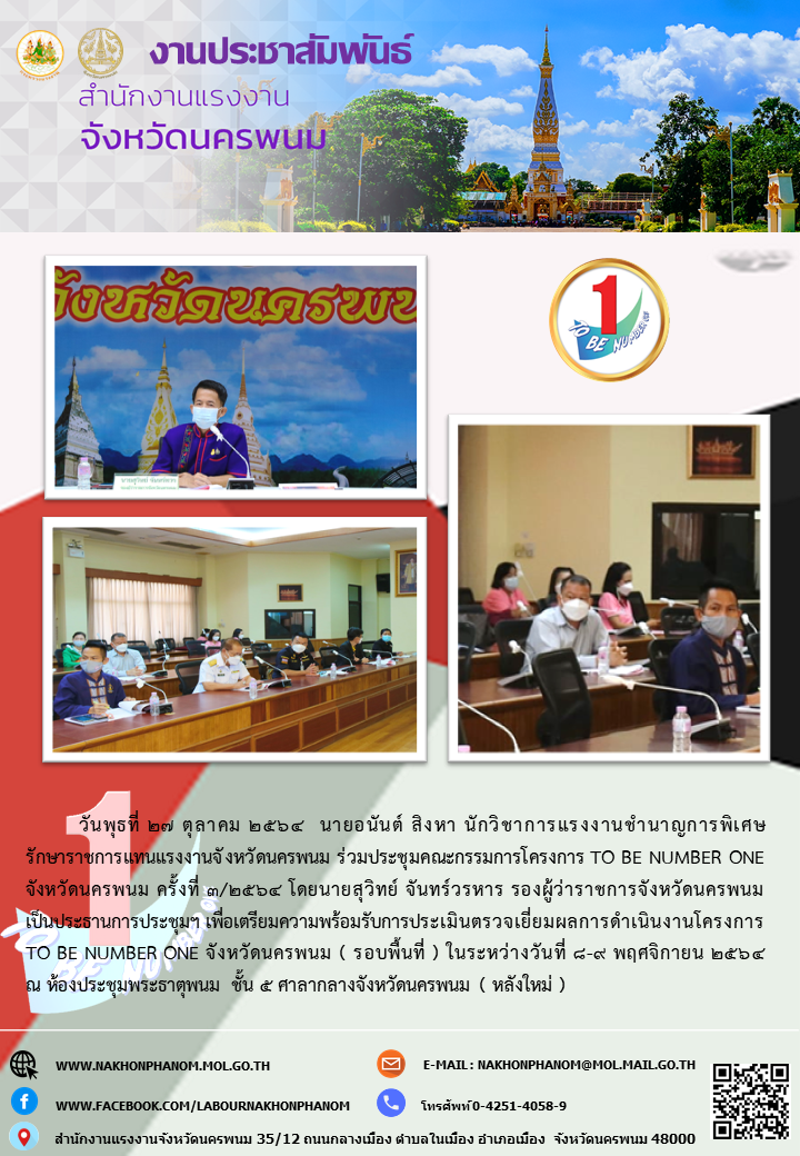 สำนักงานแรงงานจังหวัดนครพนม ร่วมประชุมคณะกรรมการโครงการ TO BE NUMBER ONE จังหวัดนครพนม