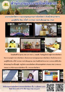 แรงงานจังหวัดตาก ร่วมประชุมคณะกรมการจังหวัดตาก หัวหน้าส่วนราชการ และผู้ที่เกี่ยวข้อง ครั้งที่ 10/2564 ประจำเดือนตุลาคม 2564