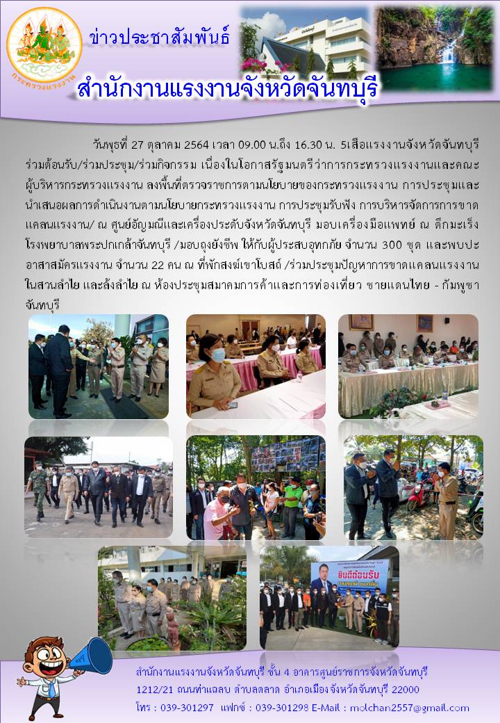 5เสือแรงงานจังหวัดจันทบุรี ร่วมต้อนรับ/ร่วมประชุม/ร่วมกิจกรรม เนื่องในโอกาสรัฐมนตรีว่าการกระทรวงแรงงานและคณะผู้บริหารกระทรวงแรงงาน ลงพื้นที่ตรวจราชการตามนโยบายของกระทรวงแรงงาน การประชุมและนำเสนอผลการดำเนินงานตามนโยบายกระทรวงแรงงาน การประชุมรับฟัง การบริหารจัดการการขาดแคลนแรงงาน/ ณ ศูนย์อัญมณีและเครื่องประดับจังหวัดจันทบุรี