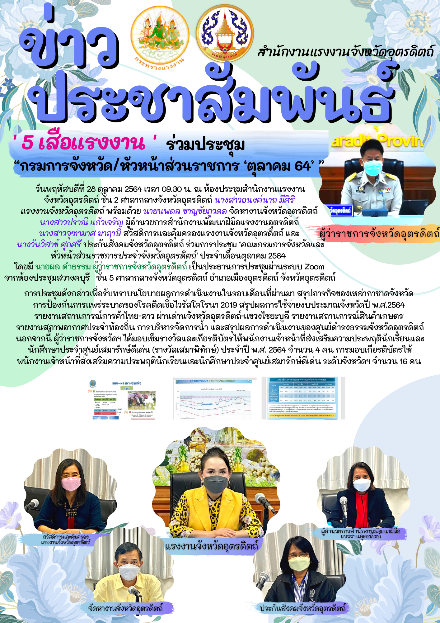 ‘5 เสือแรงงาน’ ร่วมประชุม “กรมการจังหวัด/หัวหน้าส่วนราชการ ‘ตุลาคม 64’ ”