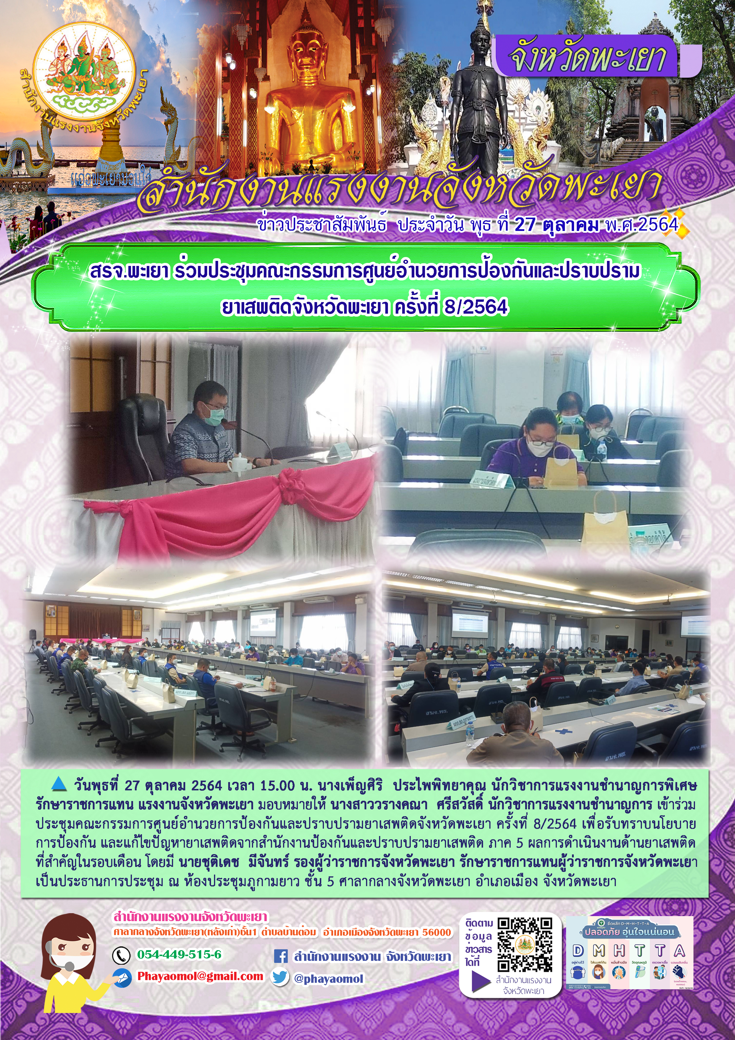 สรจ.พะเยา ร่วมประชุมคณะกรรมการศูนย์อำนวยการป้องกันและปราบปรามยาเสพติดจังหวัดพะเยา ครั้งที่ 8/2564