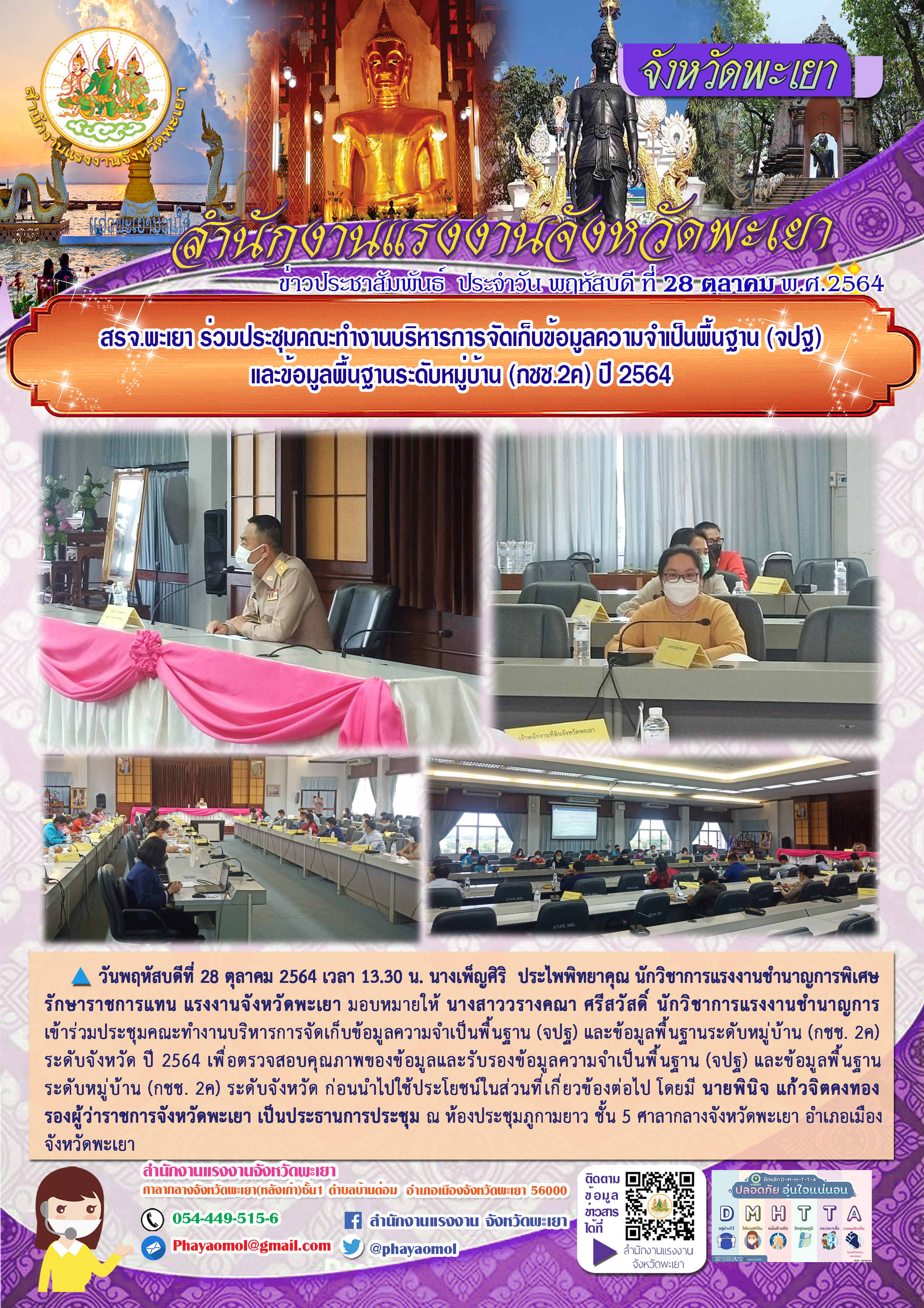 สรจ.พะเยา ร่วมประชุมคณะทำงานบริหารการจัดเก็บข้อมูลความจำเป็นพื้นฐาน (จปฐ) และข้อมูลพื้นฐานระดับหมู่บ้าน (กชช.2ค) ปี 2564