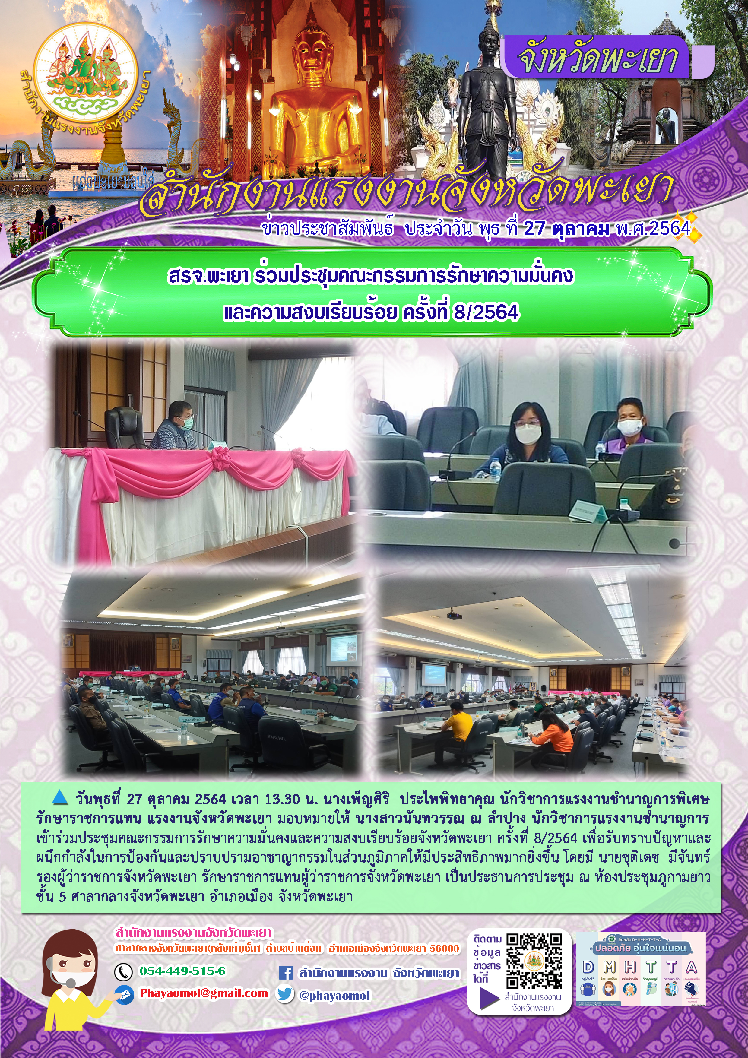 สรจ.พะเยา ร่วมประชุมคณะกรรมการรักษาความมั่นคงและความสงบเรียบร้อย ครั้งที่ 8/2564