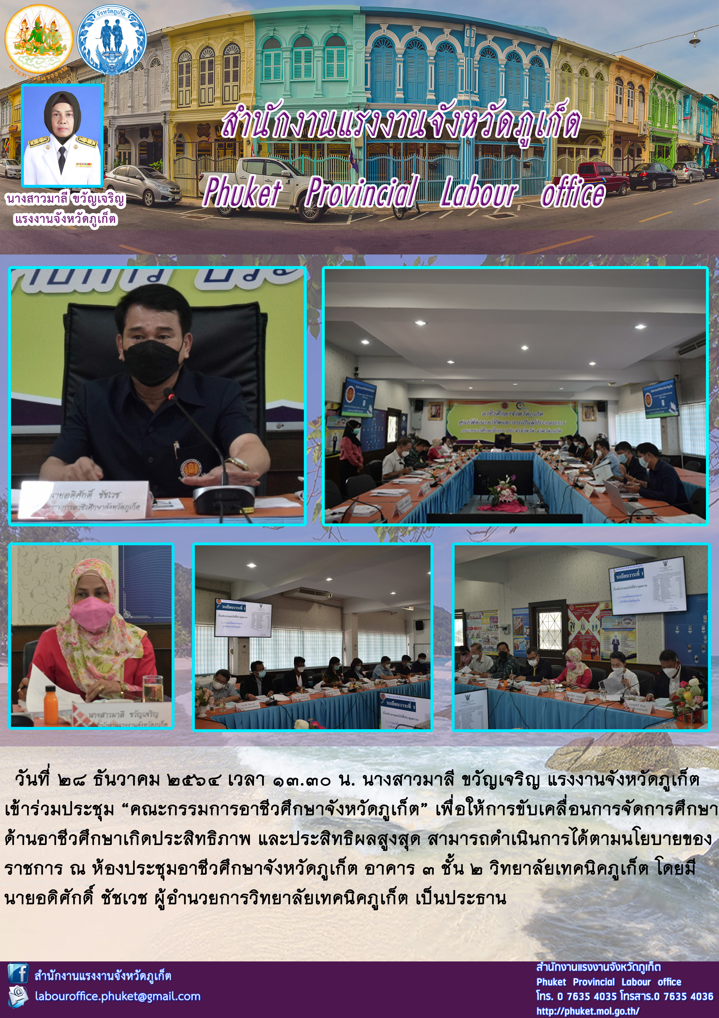 นางสาวมาลี ขวัญเจริญ แรงงานจังหวัดภูเก็ต เข้าร่วมประชุม “คณะกรรมการอาชีวศึกษาจังหวัดภูเก็ต”