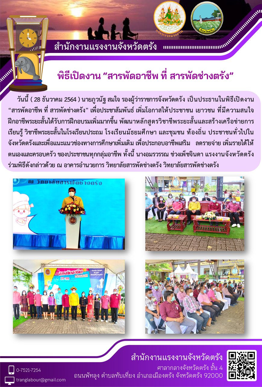 แรงงานจังหวัดตรัง ร่วมพิธีเปิดงาน “สารพัดอาชีพ ที่ สารพัดช่างตรัง”