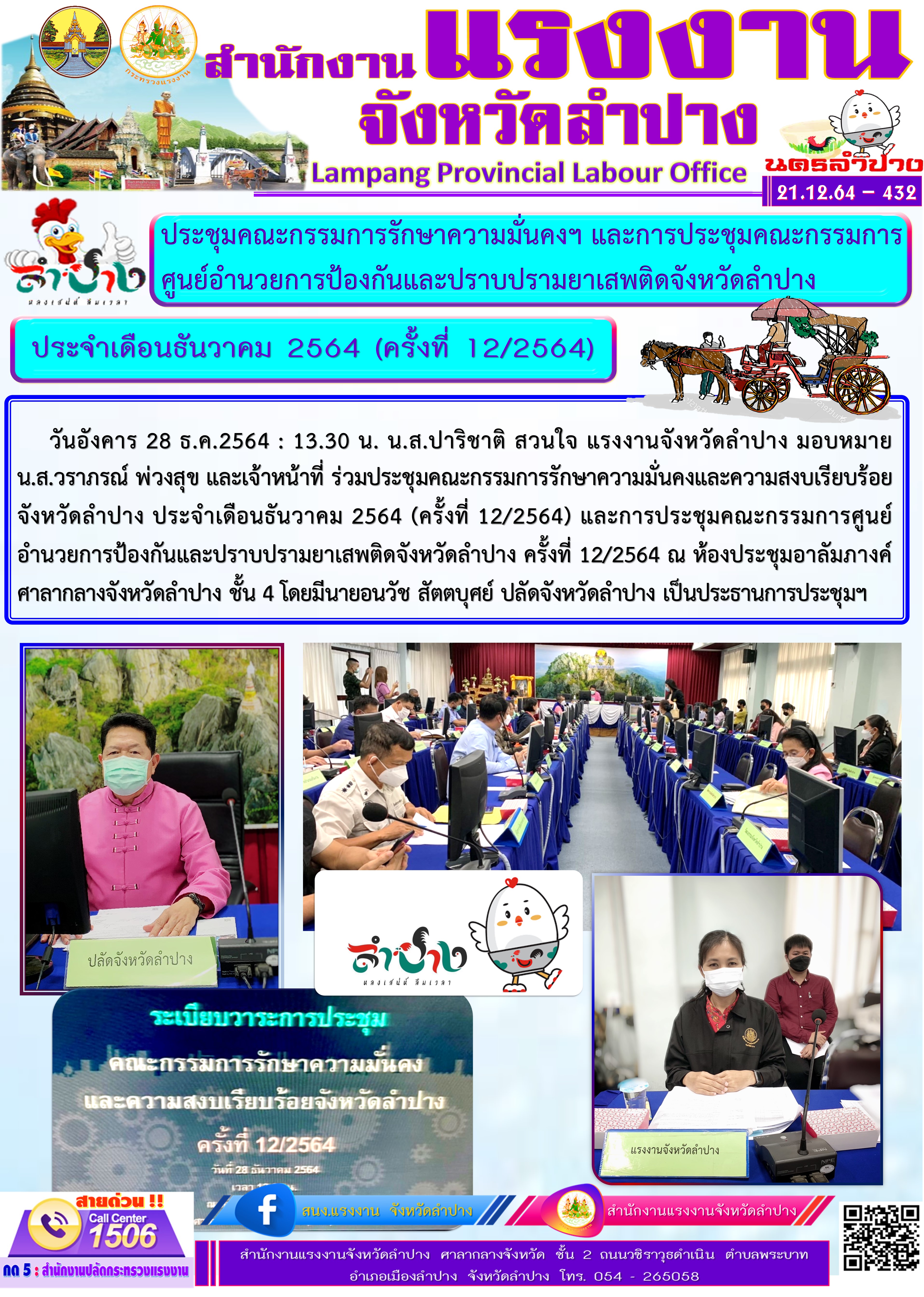 การประชุมคณะกรรมการรักษาความมั่นคงฯ และการประชุมคณะกรรมการศูนย์อำนวยการป้องกันและปราบปรามยาเสพติดจังหวัดลำปาง ประจำเดือนธันวาคม 2564 (ครั้งที่ 12/2564)