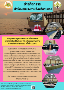 สำนักงานแรงงานจังหวัดสุพรรณบุรี เข้าร่วมประชุมคณะกรรมการรักษาความมั่นคงและความสงบเรียบร้อยจังหวัดสุพรรณบุรี ครั้งที่ 6/2564