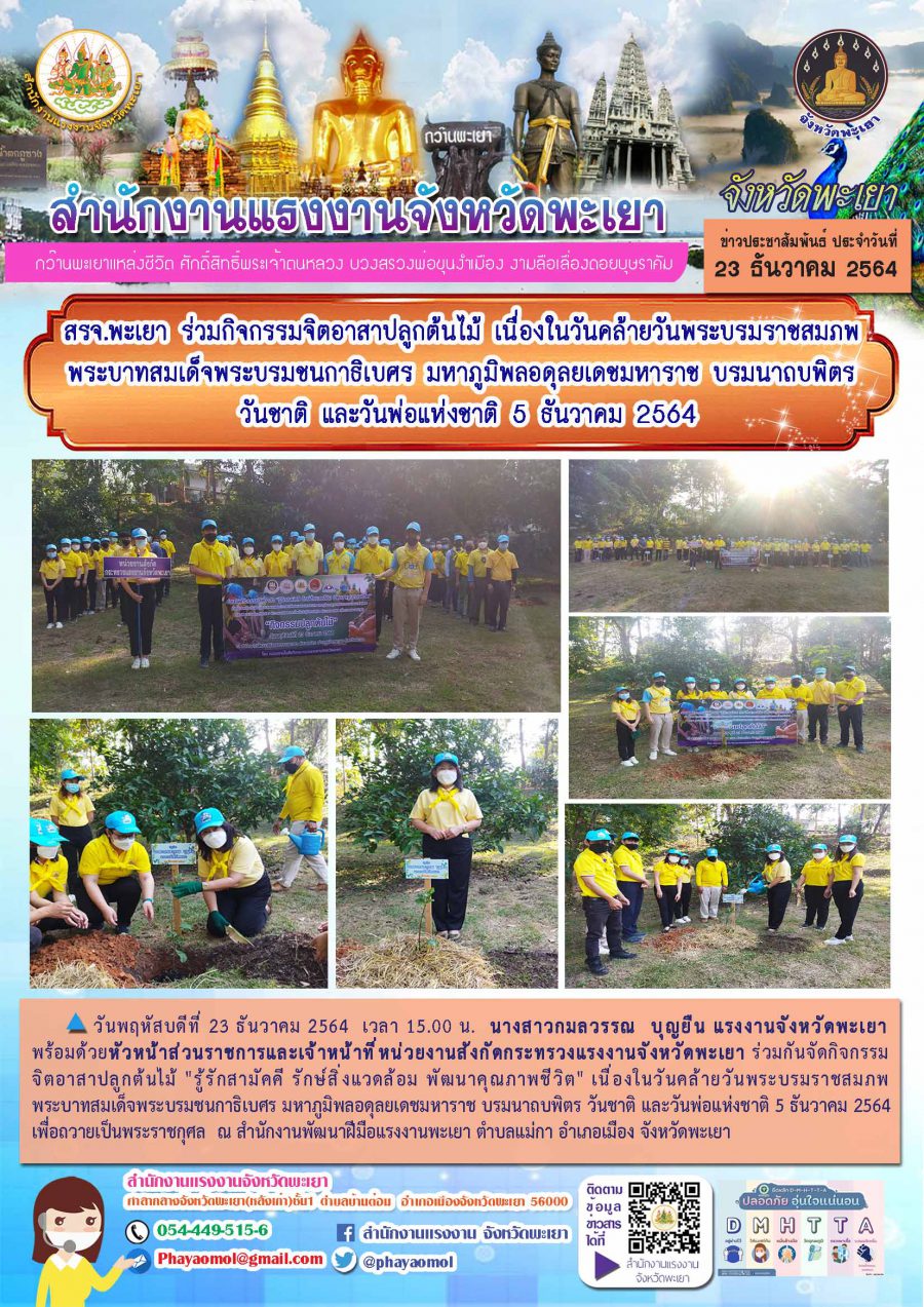 สรจ.พะเยา ร่วมกิจกรรมจิตอาสาปลูกต้นไม้ เนื่องในวันคล้ายวันพระบรมราชสมภพ พระบาทสมเด็จพระบรมชนกาธิเบศร มหาภูมิพลอดุลยเดชมหาราช บรมนาถบพิตร วันชาติและวันพ่อแห่งชาติ 5 ธันวาคม 2564