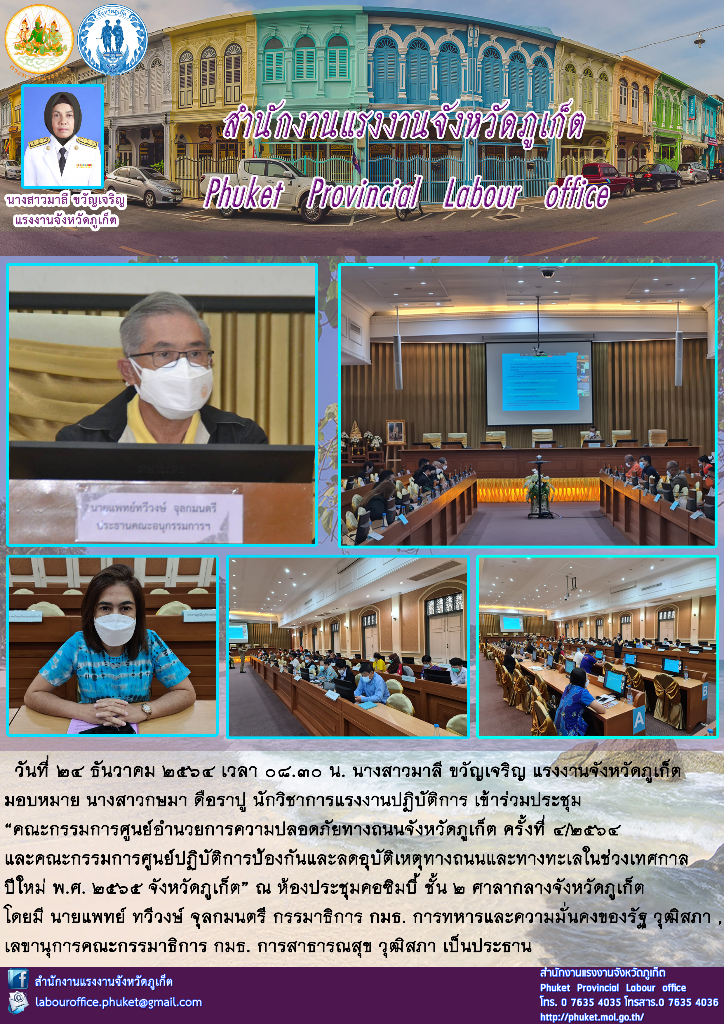 สรจ.ภูเก็ต เข้าร่วมประชุมคณะกรรมการศูนย์อำนวยการความปลอดภัยทางถนนจังหวัดภูเก็ต ครั้งที่ 4/2564 และคณะกรรมการศูนย์ปฏิบัติการป้องกันและลดอุบัติเหตุทางถนนและทางทะเลในช่วงเทศกาล ปีใหม่ พ.ศ. 2565 จังหวัดภูเก็ต