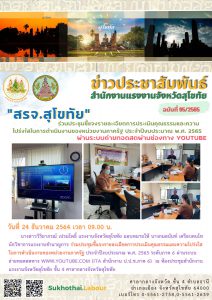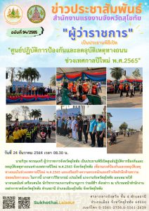 ผู้ว่าราชการจังหวัดสุโขทัย เปิดศูนย์ปฏิบัติการป้องกันและลดอุบัติเหตุทางถนนช่วงเทศกาลปีใหม่ พ.ศ. 2565