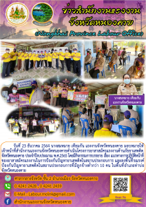 แรงงานจังหวัดหนองคาย มอบหมายให้ เจ้าหน้าที่สำนักงานแรงงานจังหวัดหนองคายดำเนินโครงการอาสาสมัครแรงงานต้านภัยยาเสพติด จังหวัดหนองคาย ประจำปีงบประมาณ พ.ศ.2565
