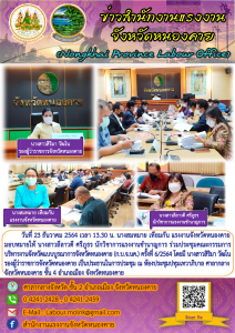 แรงงานจังหวัดหนองคาย มอบหมายให้ นางสาวลีลาวดี ศรีภูธร นักวิชาการแรงงานชำนาญการ ร่วมประชุมคณะกรรมการ บริหารงานจังหวัดแบบบูรณาการจังหวัดหนองคาย (ก.บ.จ.นค.) ครั้งที่ 6/2564