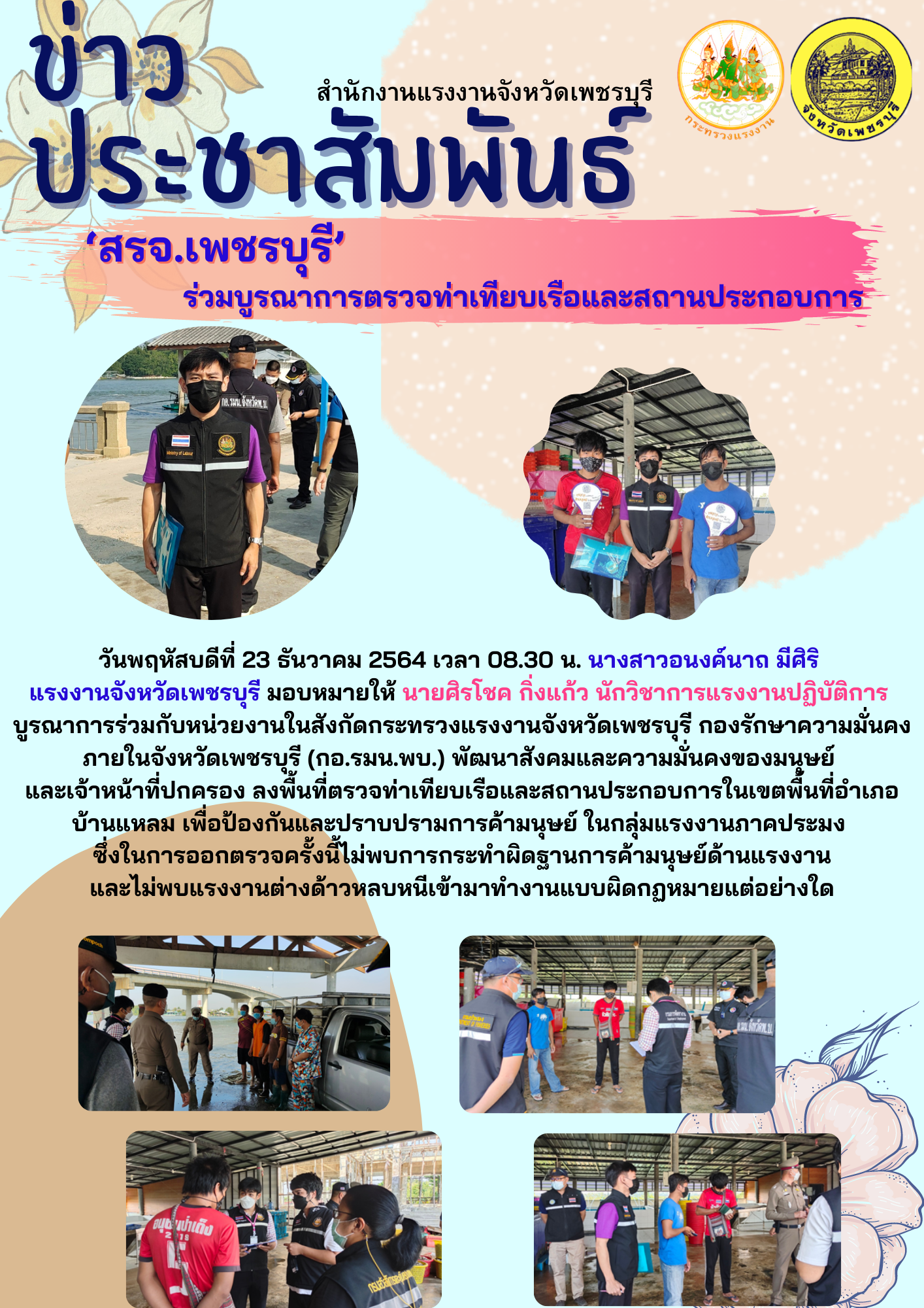 ‘สรจ.เพชรบุรี’ บูรณาการตรวจท่าเทียบเรือและสถานประกอบการ