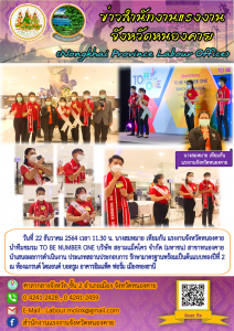 แรงงานจังหวัดหนองคาย นำทีมชมรม TO BE NUMBER ONE บริษัท สยามแม็คโคร จำกัด (มหาชน) สาขาหนองคาย นำเสนอผลการดำเนินงาน ประเภทสถานประกอบการ รักษามาตรฐานพร้อมเป็นต้นแบบทองปีที่ 2