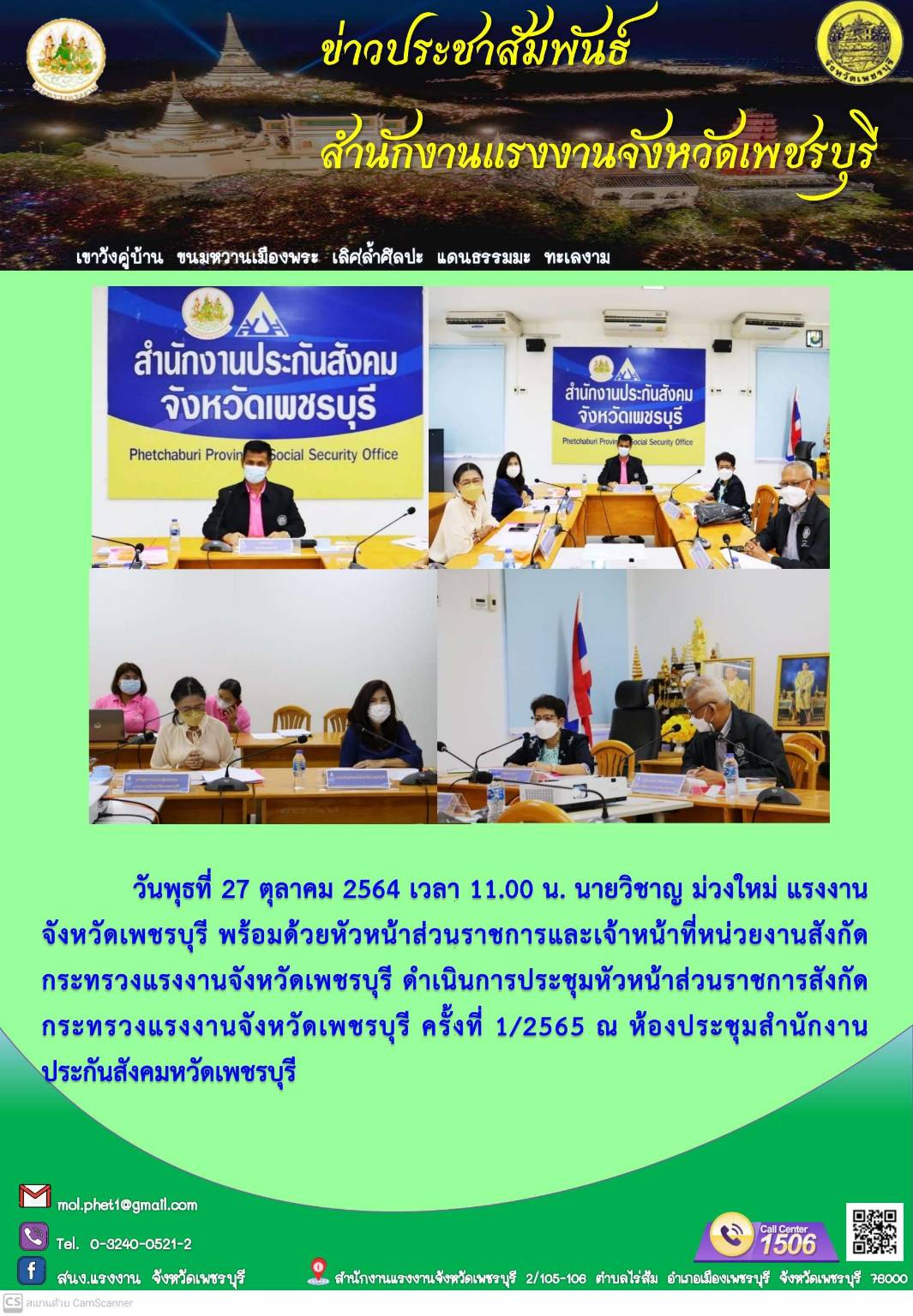 แรงงานจังหวัดเพชรบุรี จัดประชุมหัวหน้าส่วนราชการในสังกัดกระทรวงแรงงานจังหวัดเพชรบุรี ครั้งที่ 1/2565