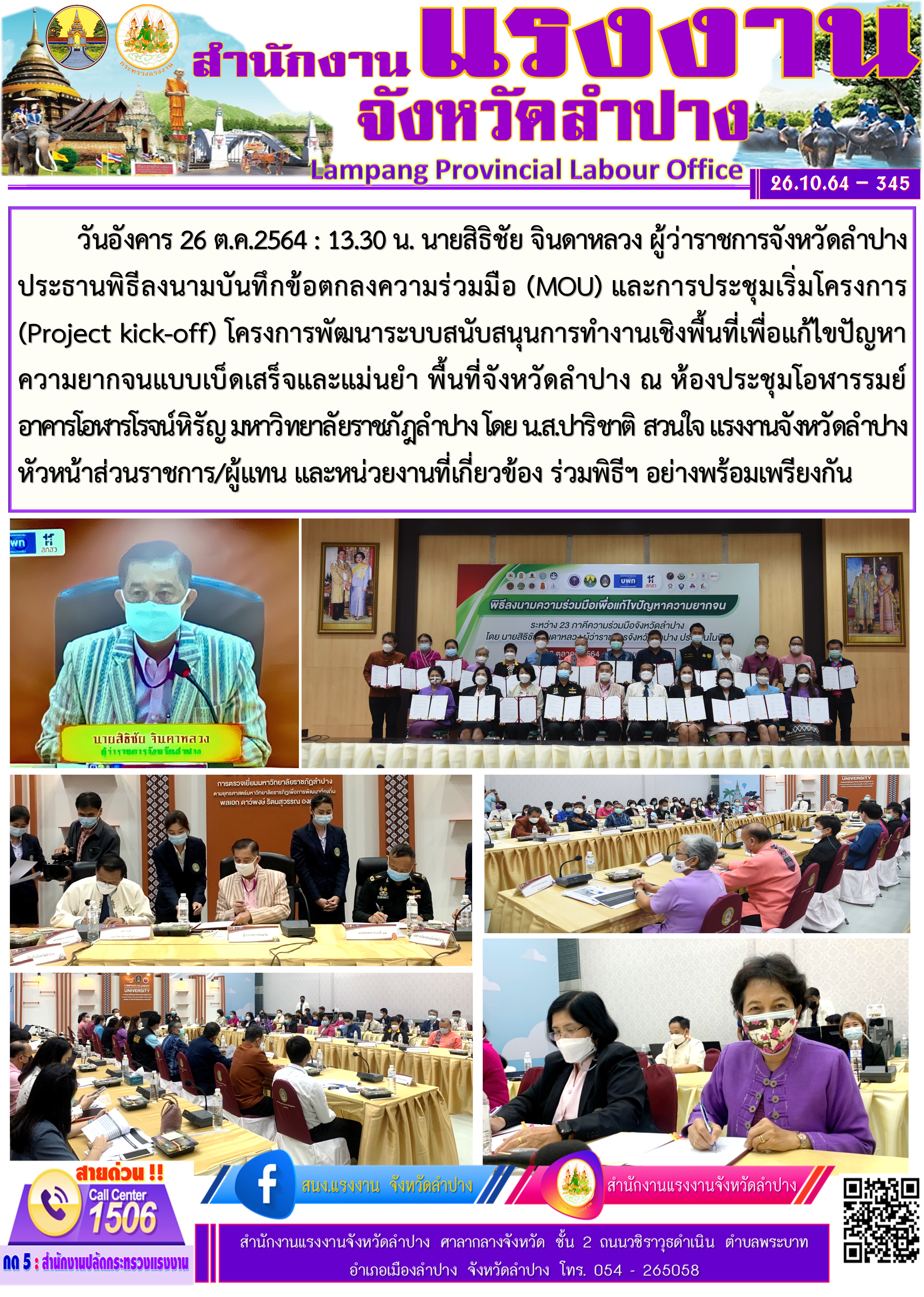 สรจ.ลำปาง ร่วมลงนามบันทึกข้อตกลงความร่วมมือ (MOU) และการประชุมเริ่มโครงการ (Project kick-off)