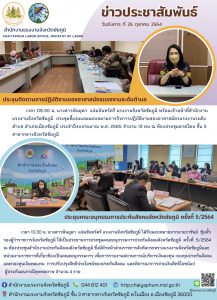 สำนักงานแรงงานจังหวัดพระนครศรีอยุธยา ประชุมคณะกรรมโรคติดต่อจังหวัดพระนครศรีอยุธยาครั้งที่ 49/2564