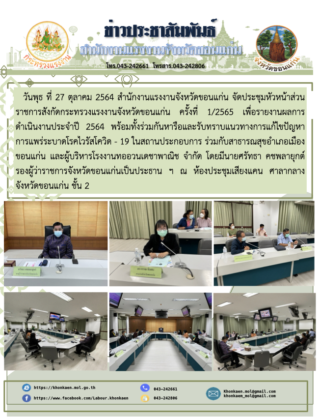 สำนักงานแรงงานจังหวัดขอนแก่น จัดประชุมหัวหน้าส่วนราชการสังกัดกระทรวงแรงงานจังหวัดขอนแก่น ครั้งที่ 1/2565